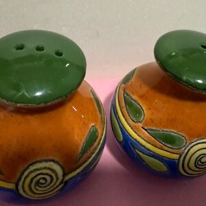 Handcrafted Ceramic Salt and Pepper Shakers - Green and Orange