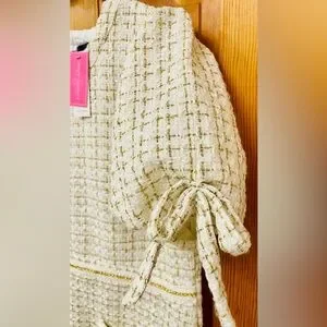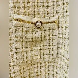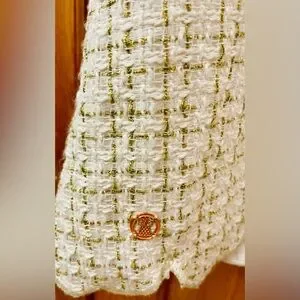 Color: Ivory with gold plaid tweed