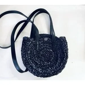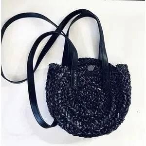 Billabong Braided Woven Circle Lined Bag Black Natural Beach Boho Hippy