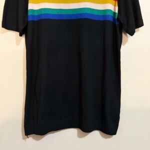 Black Short Sleeve Knit T-Shirt Sweater w Rainbow Stripes