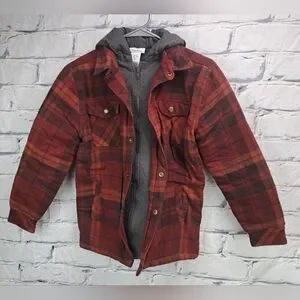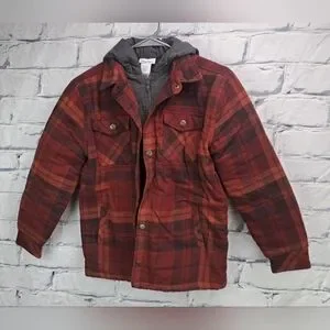 Tommy Bahama Kids Boys Shirt Jacket Quilted Hoodie Winter Red Plaid Size XL (14)