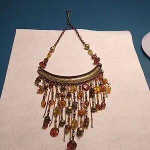 Elegant Gold and Brown Chain/Beaded Statement Necklace Boho Granny Chic