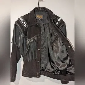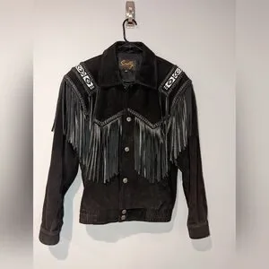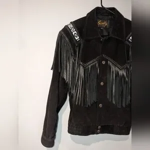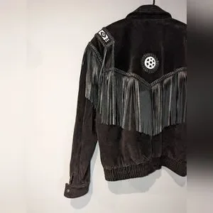 Vintage Scully Authentic Genuine black leather jacket with black leather fringe.