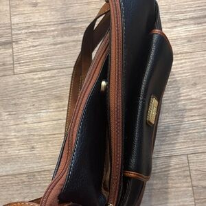 Classy black and brown crossbody bag. Perfect for daily use, it offers style and practicality. Small imperfection shown in photos, loose thread. Good condition.