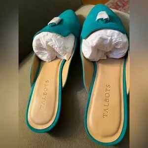 Talbots turquoise suede mules size 9 new in box. Tassel detail, made in Brazil. Couldn’t be prettier.