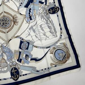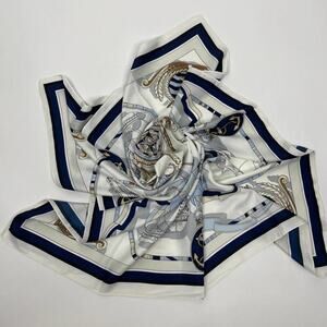 NEW Cream Navy Blue Nautical Antique Gold Baroque Printed Silky Fashion Scarf