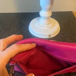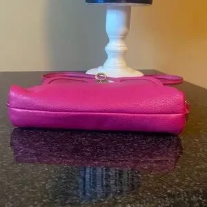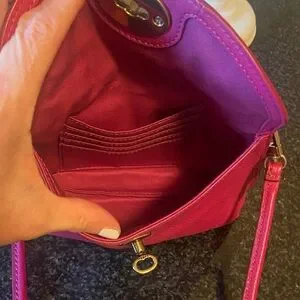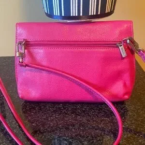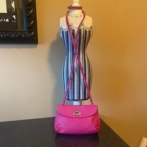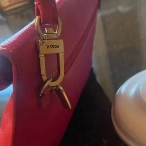 Fossil Monica Genuine Leather vibrant pink Convertible crossbody mini bag with classic turn lock closure.