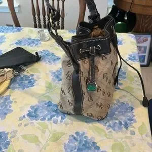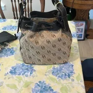 Dooney & Bourke Brown and Tan Shoulder Bag 10 x 12 x 6 drawstring closure