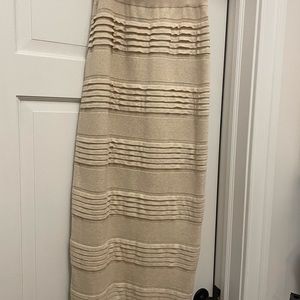Elegant cream pencil skirt. Features ribbed detailing. Perfect for formal occasions.