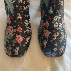 Floral Embroidered Ankle Boots Size 8