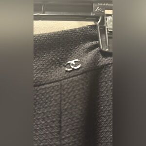 This Chanel black skirt is perfect for any occasion. Its classic design offers a timeless look.