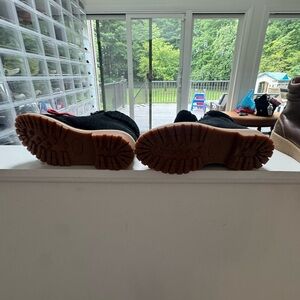 Stylish black boots featuring bold red laces and a cozy lining. Worn once.