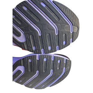 These Brooks running shoes offer a comfortable fit with their lightweight design and breathable mesh upper. The vibrant red laces and purple sole add a touch of style, while the cushioned midsole ensures a smooth ride. Ideal for both casual runners and serious athletes, these shoes provide support and durability.