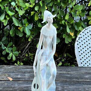 Lladro Nao "Harlequin" Jester Large with Guitar Mandolin Porcelain Vintage