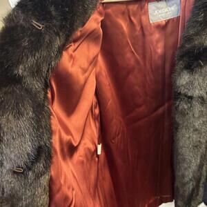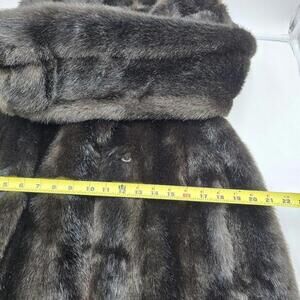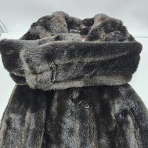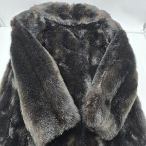 Indulge in a luxurious and timeless piece with this vintage Jordache faux fur coat. The brown coat features long sleeves, a hook and loop closure, and a regular fit. The outer shell material is made of high-quality faux fur, while the lining is made of silk.