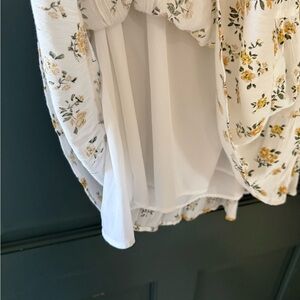 Charming white dress with yellow floral pattern. Perfect for a sunny day.
