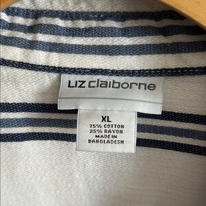 Liz Claiborne Navy and White Striped Shirt
