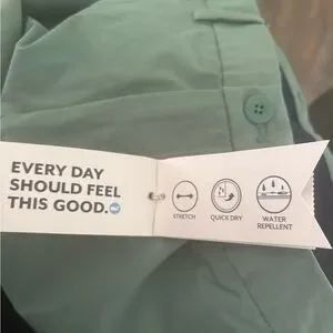 like built-in stretch, moisture-wicking fabric, water-repellent finish, hidden zip pocket