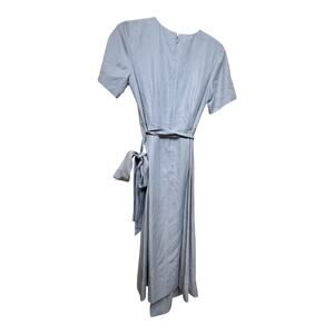 This is a NWOT Club Monaco Light Blue Asymmetrical Wrap Midi Dress in Size 4.