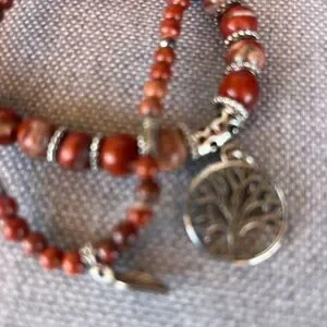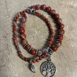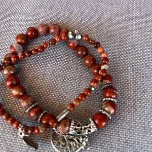 Red Jasper Beaded Bracelet Set w/ Tree of Life & Leaf Charms