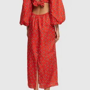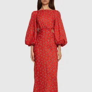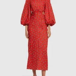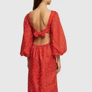 Johanna Ortiz Printed linen flared sleeve midi dress