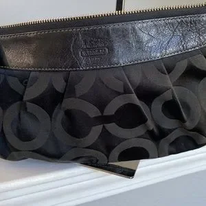 Cute Coach Signature purse with shoulder strap inside lavender lining with Zip pocket and open pocket.
