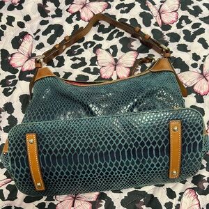 Dooney & Bourke Erica 90s Hobo Bag Snake Embossed Navy Blue Leather Suede Purse