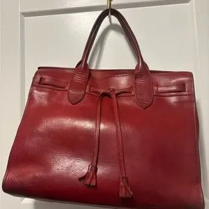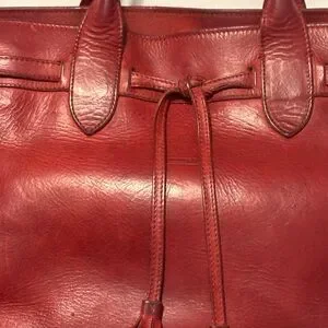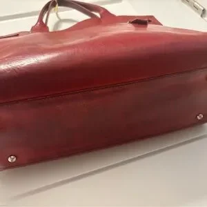 Luxurious red leather tote with elegant design. Perfect for any occasion. High quality vintage leather