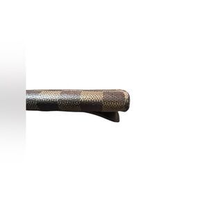 This is an authentic LOUIS VUITTON Damier Ebene Sarah Wallet. This stylish wallet is crafted of checkered coated canvas in brown. The flap opens with a polished gold snap to a brown crossgrain leather interior with card slots, a central zipper pocket for currency, and bill compartment.