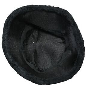 Vintage Black Plush Bucket Hat w Paisley Black Satin Trim and Bow - Hey Viv