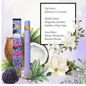 Authentic Gucci Flora Gorgeous Magnolia perfume in a stylish purple bottle. Perfect for a floral fragrance experience.Explore a world of confidence and inner strength with the newest addition to the FloraFantasy collection. Transporting you to a world of radiant floral power, the soft and sensual scents of Magnolia Essence, Dewberries Accord, and Patchouli Essence combine to create an empowered perfume for women.