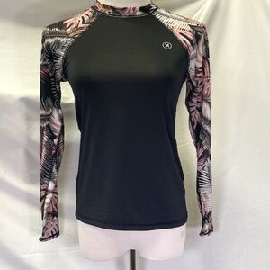 Hurley Women’s Black with Pink & Brown Frond Sleeves Size XS