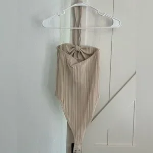 Stylish ribbed one piece. Halter neck design. Perfect for any occasion.