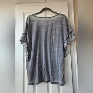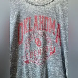 Show your team spirit with this stylish gray Oklahoma Sooners top. Featuring ruffled sleeves and a bold red logo, it's perfect for any fan.