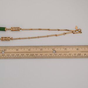 Class up your look with this vintage necklace from Sarah Coventry. Featuring a 17" gold-tone chain, this necklace sports faux jade and hollow lantern-like beads for that Asian style.