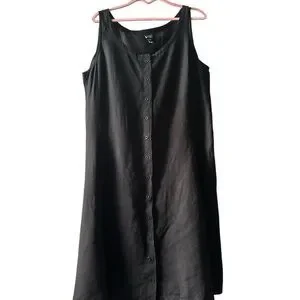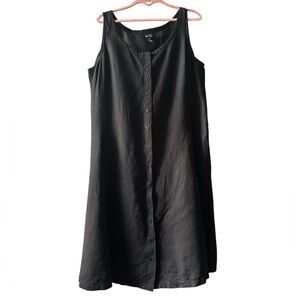 Eileen Fisher 100% linen Black Sleeveless Button-Down Dress