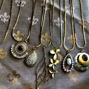 Includes one necklace made with a new vintage chain and handmade pendant. Discover the perfect blend of elegance and style with this exquisite gold pendant necklace. Each piece features intricate designs and sparkling accents, ideal for any occasion.