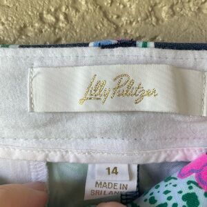 Chic navy shorts with vibrant floral patterns. Features pink, blue, and green accents. Ideal for summer outings.