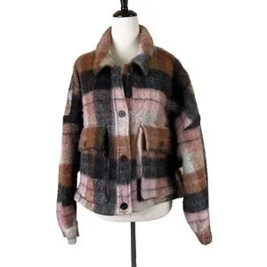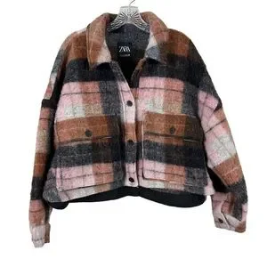 Zara Plaid Wool Blend Cropped Shacket