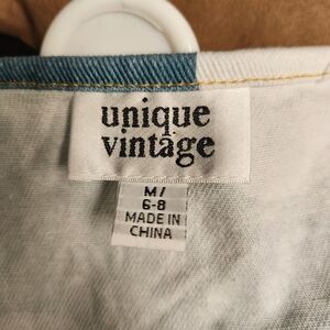 Unique Vintage Blue Denim & Egg Flower Print Fit & Flare Dress Medium (6-8)