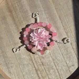 handmade pink bracelet with heart charms. 𓆩♡𓆪