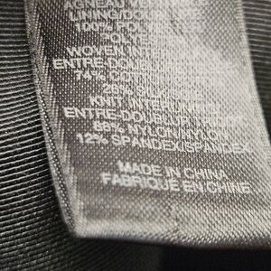 Lining 100% polyester; Woven interlining 74% cotton 26% silk; Knit interlining 88% nylon 12% Spandex.