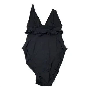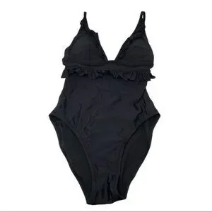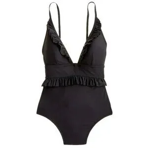 J. Crew Long Torso Ruffle Deep V One piece Swimsuit Black NWT
