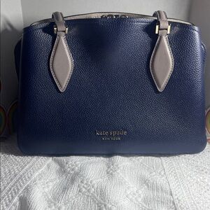 Chic Kate Spade shoulder bag in dark blue. Features elegant beige handles. Perfect for daily use.