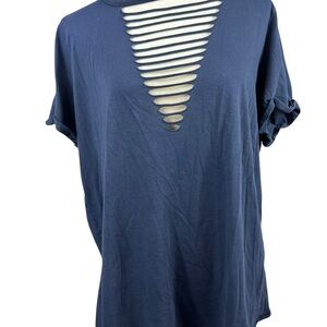 Torrid deconstructed neckline on blue on short sleeve t-shirt size 2-2X/18-20