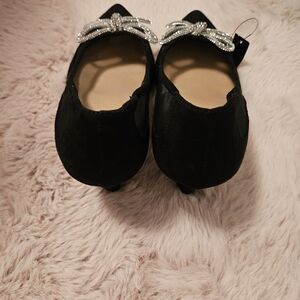 Torrid Black Heels with Mesh And Rhinestone Bow Accent