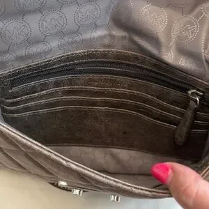 Elegant quilted pattern with a metallic sheen. Features a chain strap and secure clasp. Ideal for evening events.