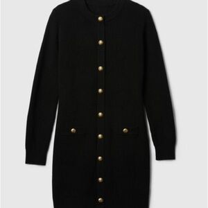 GAP Black Mini Sweater Dress with Gold Buttons