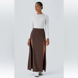 Halara Brown High Waisted Buckle 2-in-1 Maxi Skirt XL NWT