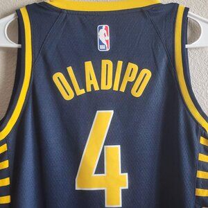 Features Pacers logo and Victor Oladipo #4 printed front and back
